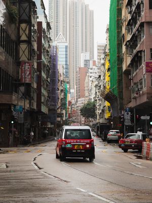 Iconic "Red Cab" in the streets of Hong Kong